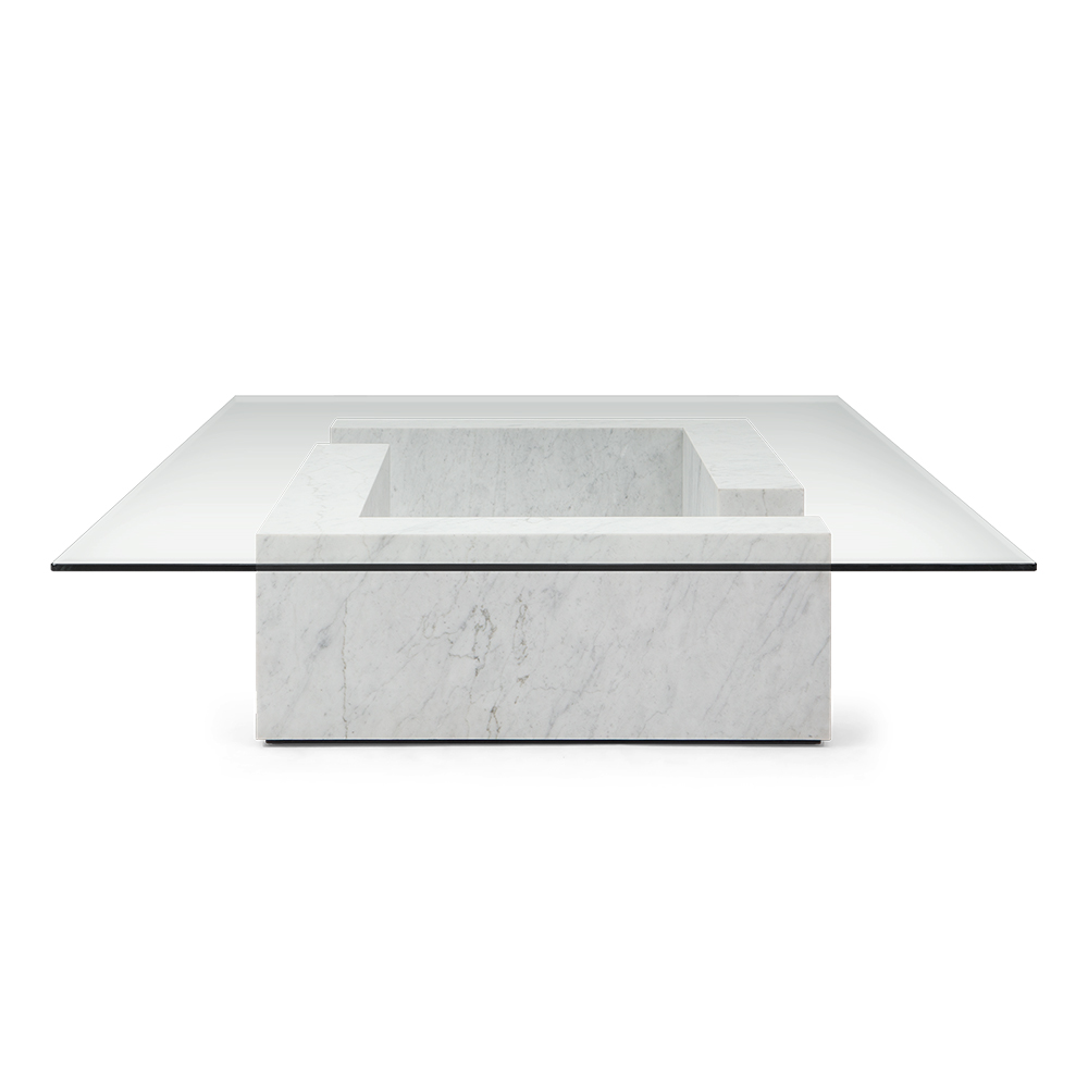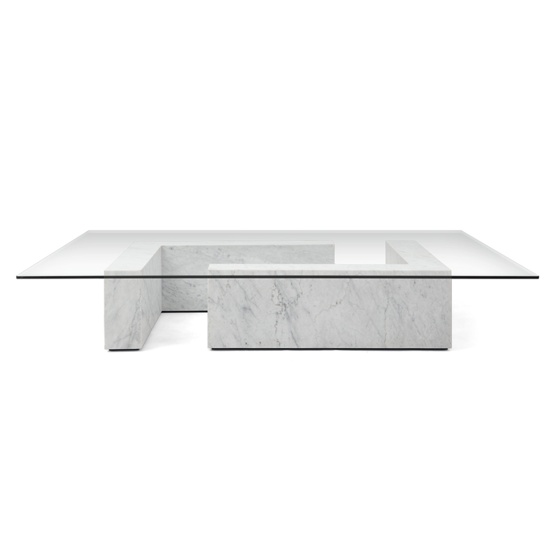 A sophisticated coffee table featuring a rectangular glass top and sturdy base, perfect for modern living spaces.